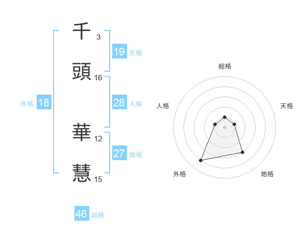 千頭 華慧さんの天格は19画の1点!