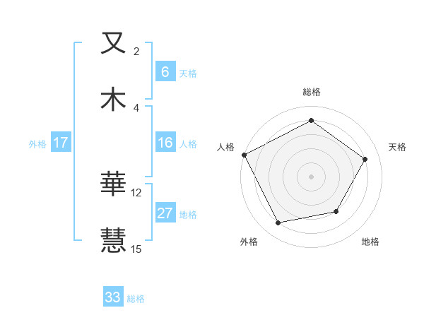 又木 華慧さんの総格は33画の4点!