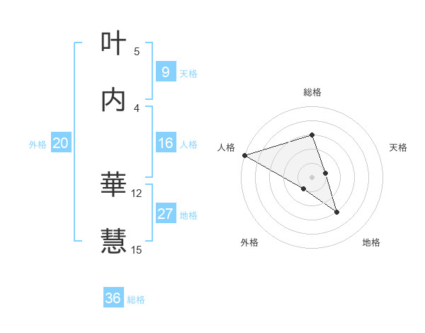 叶内 華慧さんを姓名の画数から五運を鑑定