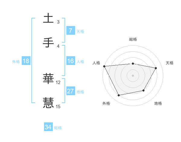 土手 華慧さんの総格は34画の2点!