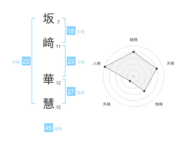 坂﨑 華慧さんの総格は45画の4点!