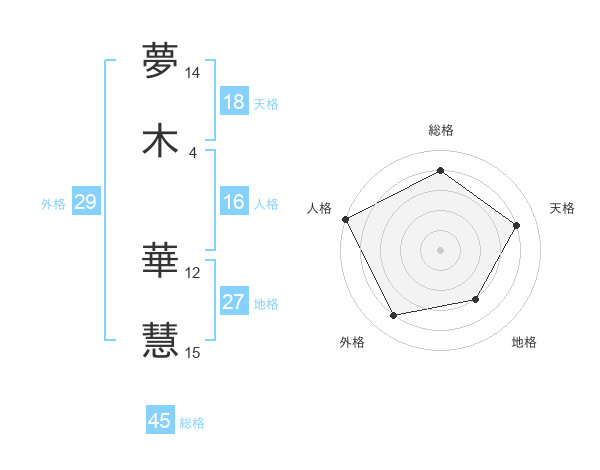夢木 華慧さんを姓名の画数から五運を鑑定