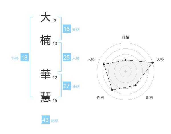 大楠 華慧さんの天格は16画の5点!