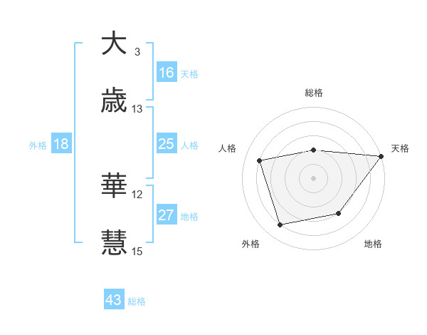 大歳 華慧さんを姓名の画数から五運を鑑定