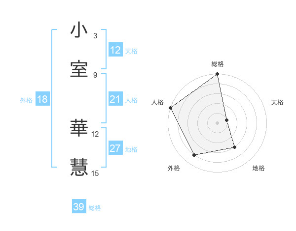 小室 華慧さんの総格は39画の5点!