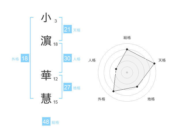 小濵 華慧さんの天格は21画の5点!