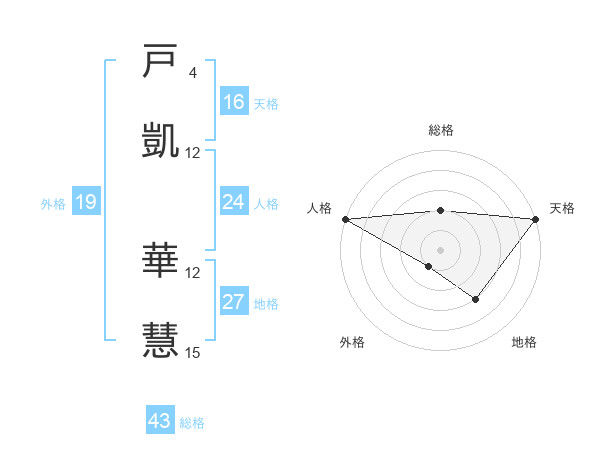 戸凱 華慧さんの天格は16画の5点!