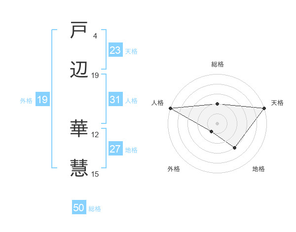 戸辺 華慧さんを姓名の画数から五運を鑑定