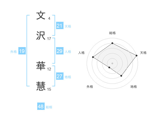 文沢 華慧さんの天格は21画の5点!