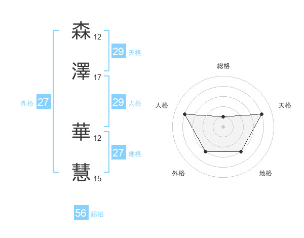 森澤 華慧さんの天格は29画の4点!