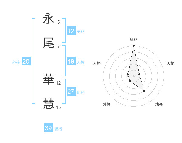 永尾 華慧さんの総格は39画の5点!