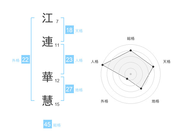 江連 華慧さんの総格は45画の4点!