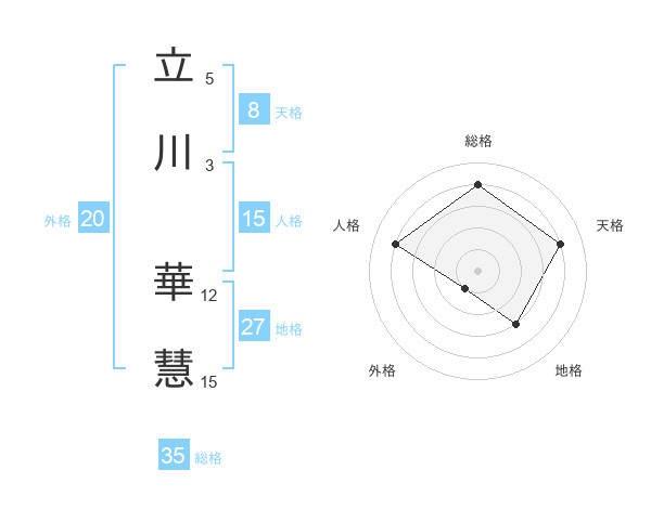 立川 華慧さんの総格は35画の4点!