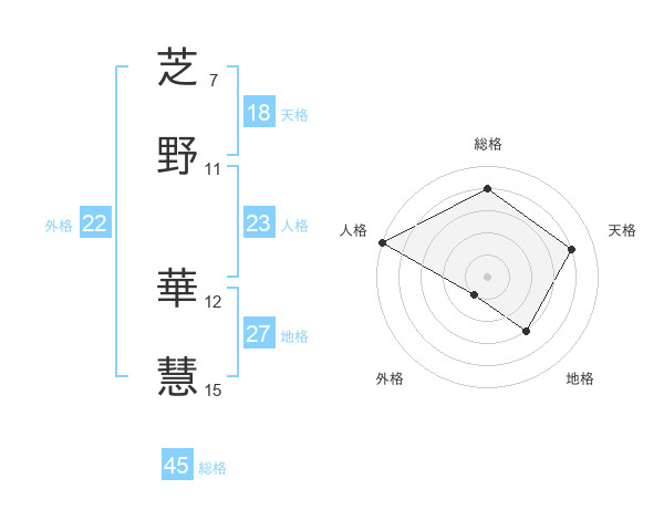 芝野 華慧さんの総格は45画の4点!