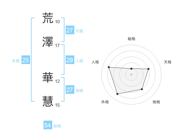 荒澤 華慧さんを姓名の画数から五運を鑑定