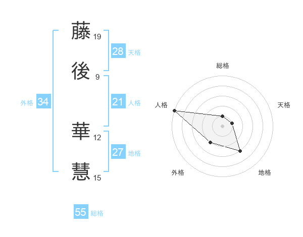 藤後 華慧さんの総格は55画の1点!
