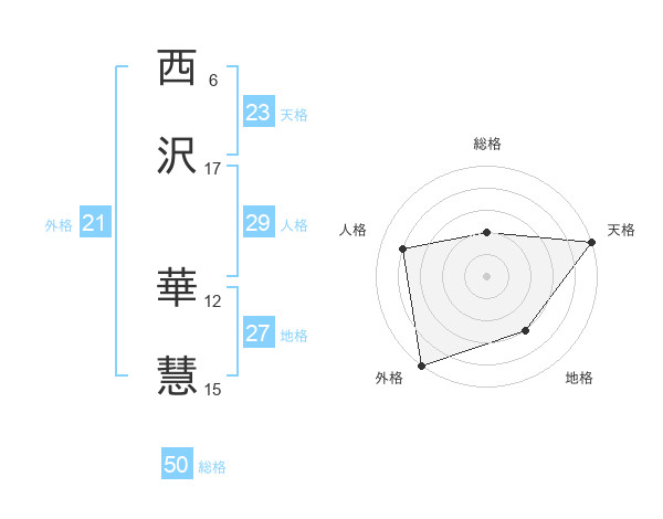 西沢 華慧さんの天格は23画の5点!