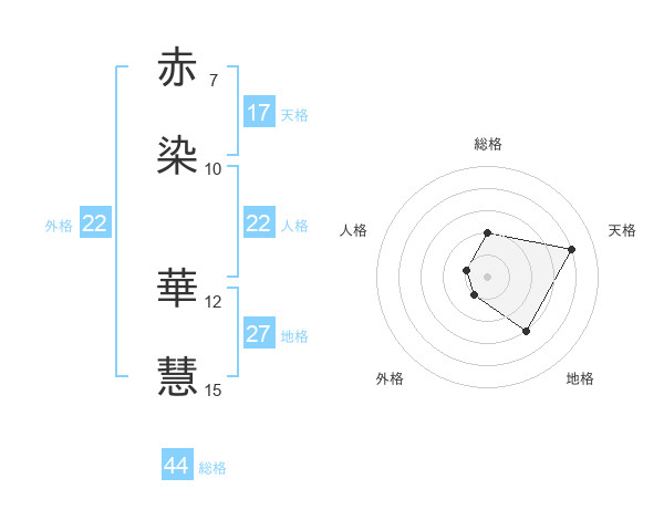 赤染 華慧さんの総格は44画の2点!