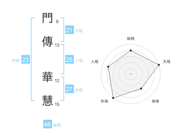 門傳 華慧さんの天格は21画の5点!