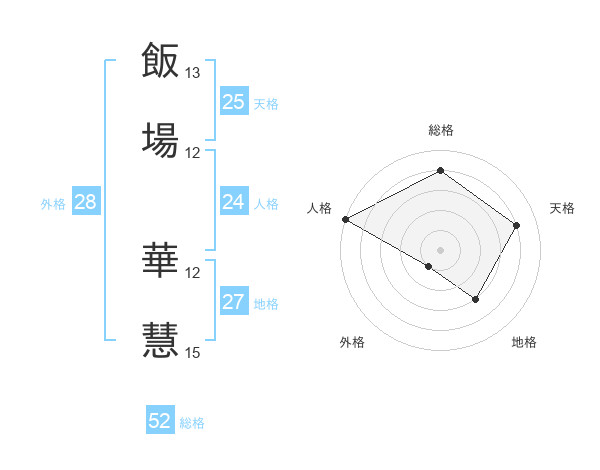飯場 華慧さんの総格は52画の4点!