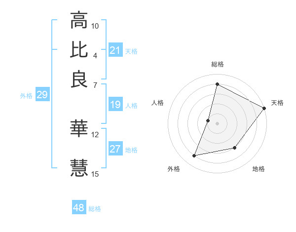 高比良 華慧さんを姓名の画数から五運を鑑定