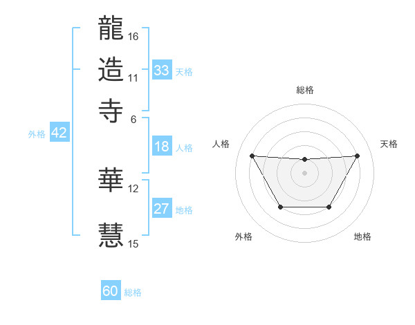 龍造寺 華慧さんを姓名の画数から五運を鑑定