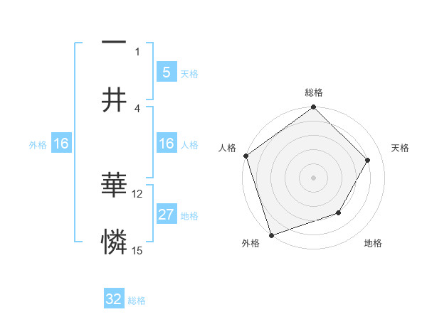 一井 華憐さんの総格は32画の5点!