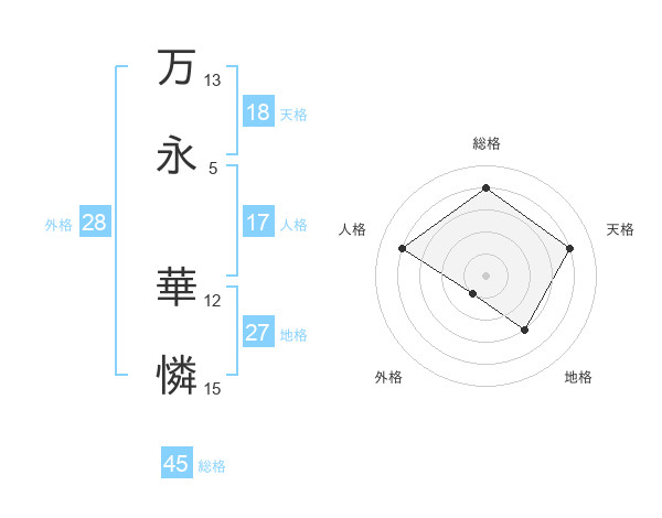 万永 華憐さんの天格は18画の4点!