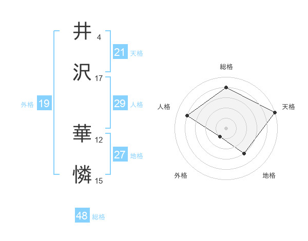 井沢 華憐さんの天格は21画の5点!