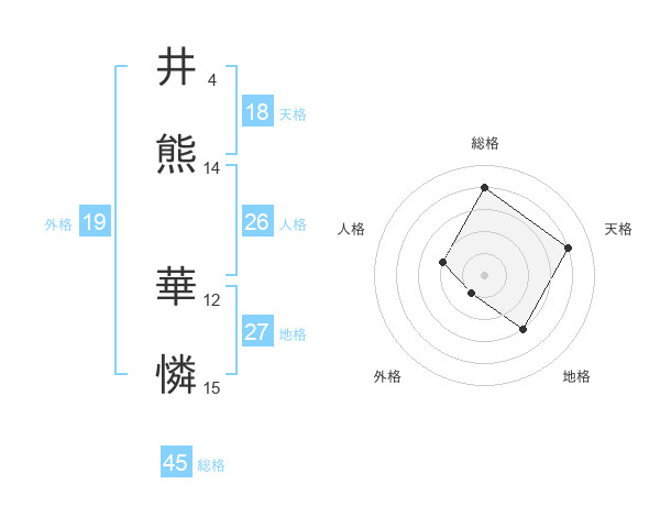 井熊 華憐さんを姓名の画数から五運を鑑定