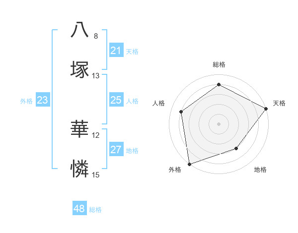 八塚 華憐さんの天格は21画の5点!