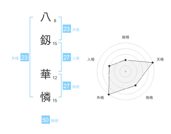 八釼 華憐さんを姓名の画数から五運を鑑定