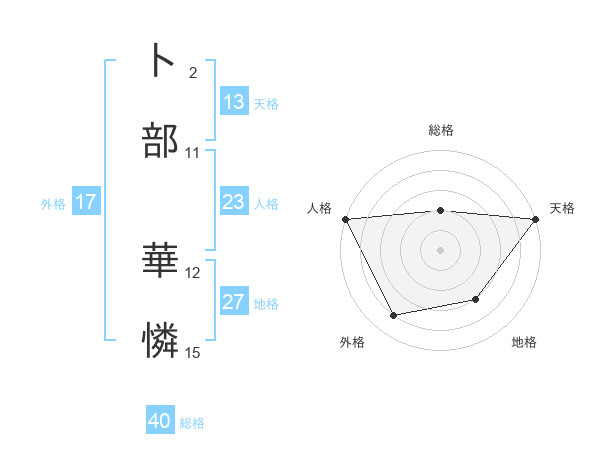 卜部 華憐さんの外格は17画の4点!