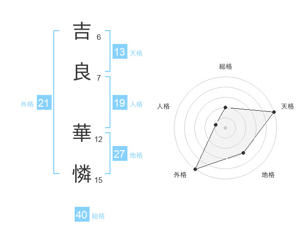 吉良 華憐さんの天格は13画の5点!