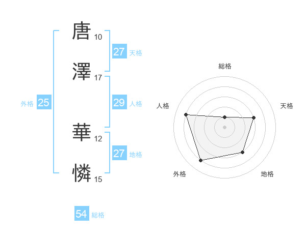 唐澤 華憐さんの天格は27画の3点!