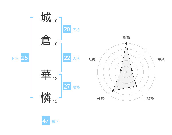 城倉 華憐さんの総格は47画の5点!