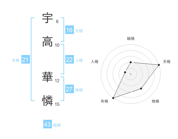 宇高 華憐さんの外格は21画の5点!