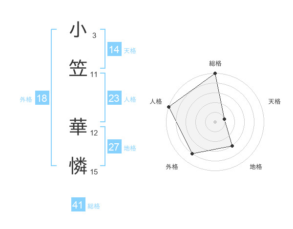 小笠 華憐さんの総格は41画の5点!