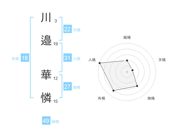 川邉 華憐さんを姓名の画数から五運を鑑定