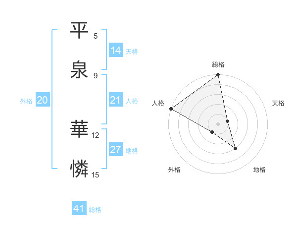 平泉 華憐さんの総格は41画の5点!