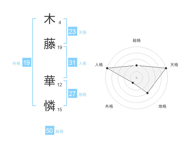 木藤 華憐さんの総格は50画の2点!