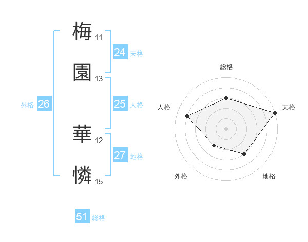 梅園 華憐さんの総格は51画の3点!