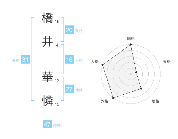 橋井 華憐さんの総格は47画の5点!