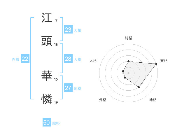 江頭 華憐さんを姓名の画数から五運を鑑定