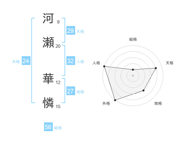 河瀬 華憐さんの外格は24画の5点!