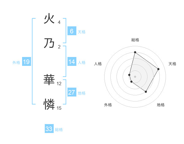 火乃 華憐さんを姓名の画数から五運を鑑定
