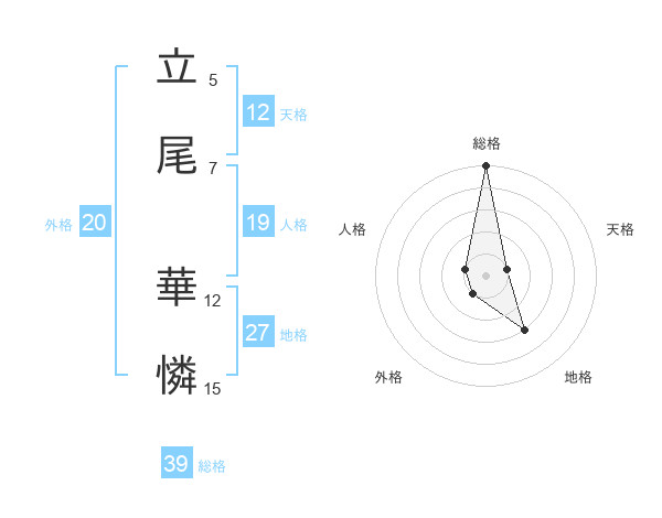 立尾 華憐さんの総格は39画の5点!