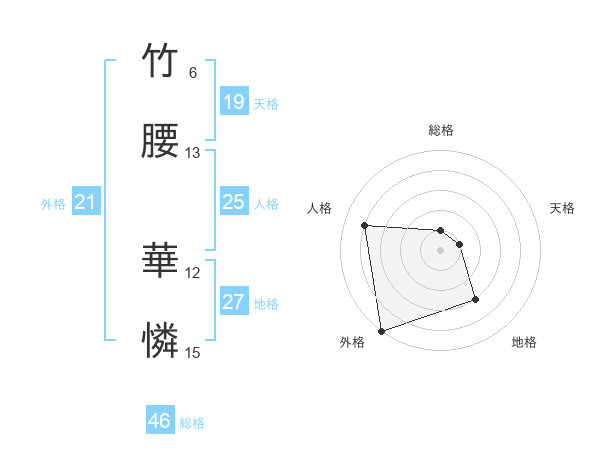 竹腰 華憐さんの外格は21画の5点!