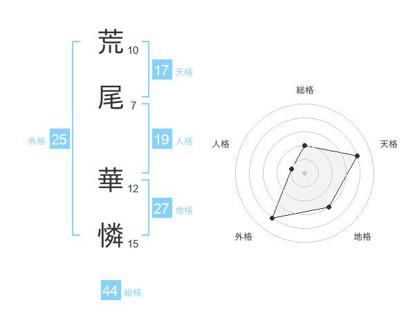 荒尾 華憐さんの天格は17画の4点!