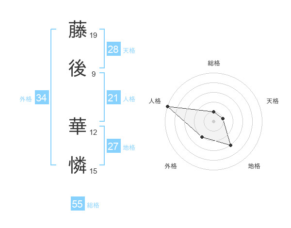 藤後 華憐さんの総格は55画の1点!